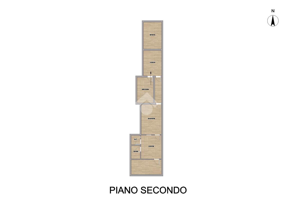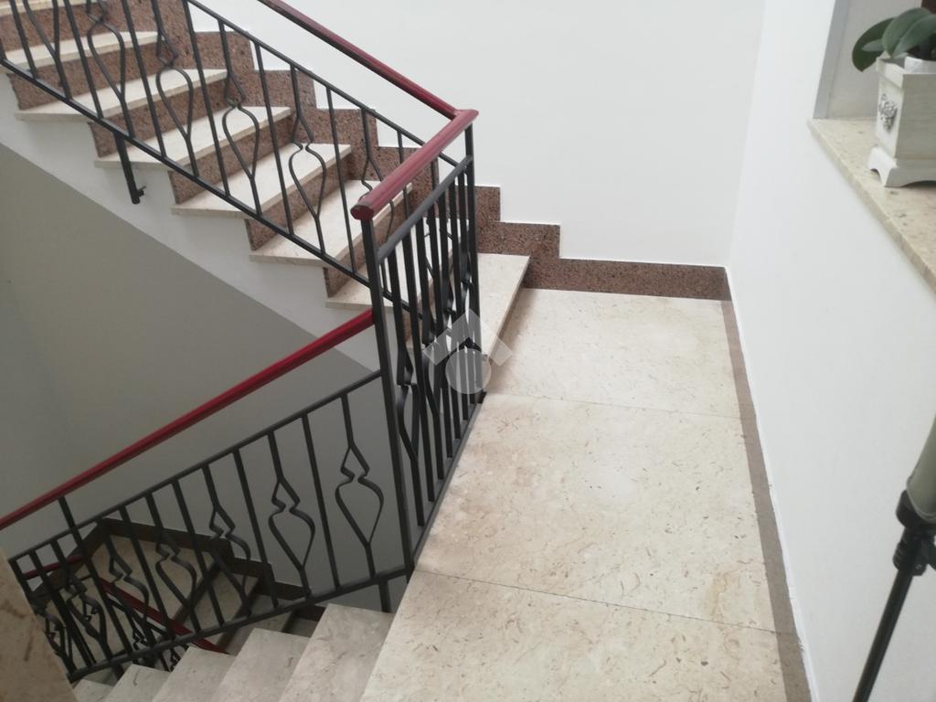 L'immobile ha delle rifiniture in parte degli anni '50, in parte degli anni 70, ed in parte più recenti. Esso si compone: da un androne d'ingresso (soggiorno doppio), vano-scala e ripostiglio al piano terra per complessivi mq 44; da ingresso su disimpegno, soggiorno, cucina, altro disimpegno, 2 camere e . al primo piano per complessivi 86 mq circa; da lavanderia, bagno, riposto, verande e terrazzi al secondo piano.