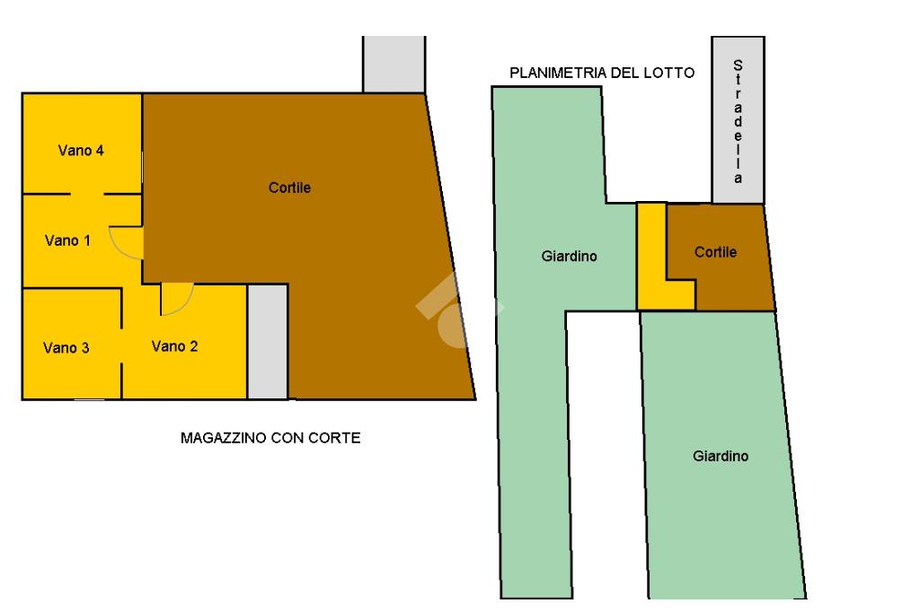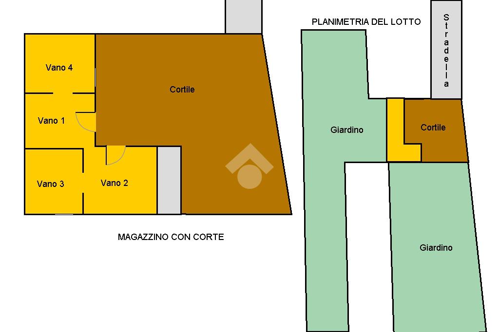 Il fabbricato risalente al 1850 ha destinazione magazzino, è suddiviso in quattro vani ed è servito da un ampio cortile. Il terreno costituito da due lunghe strisce è incolto ed ospita qualche albero da frutta o conifere.